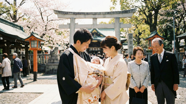 神さまのみたまを頂いて誕生した子供の今後の健やかな成長を祈って、男子は三十二日、女子は三十三日目に神社へお参りし、祝詞を奏上してもらいます。これが初宮参りです。